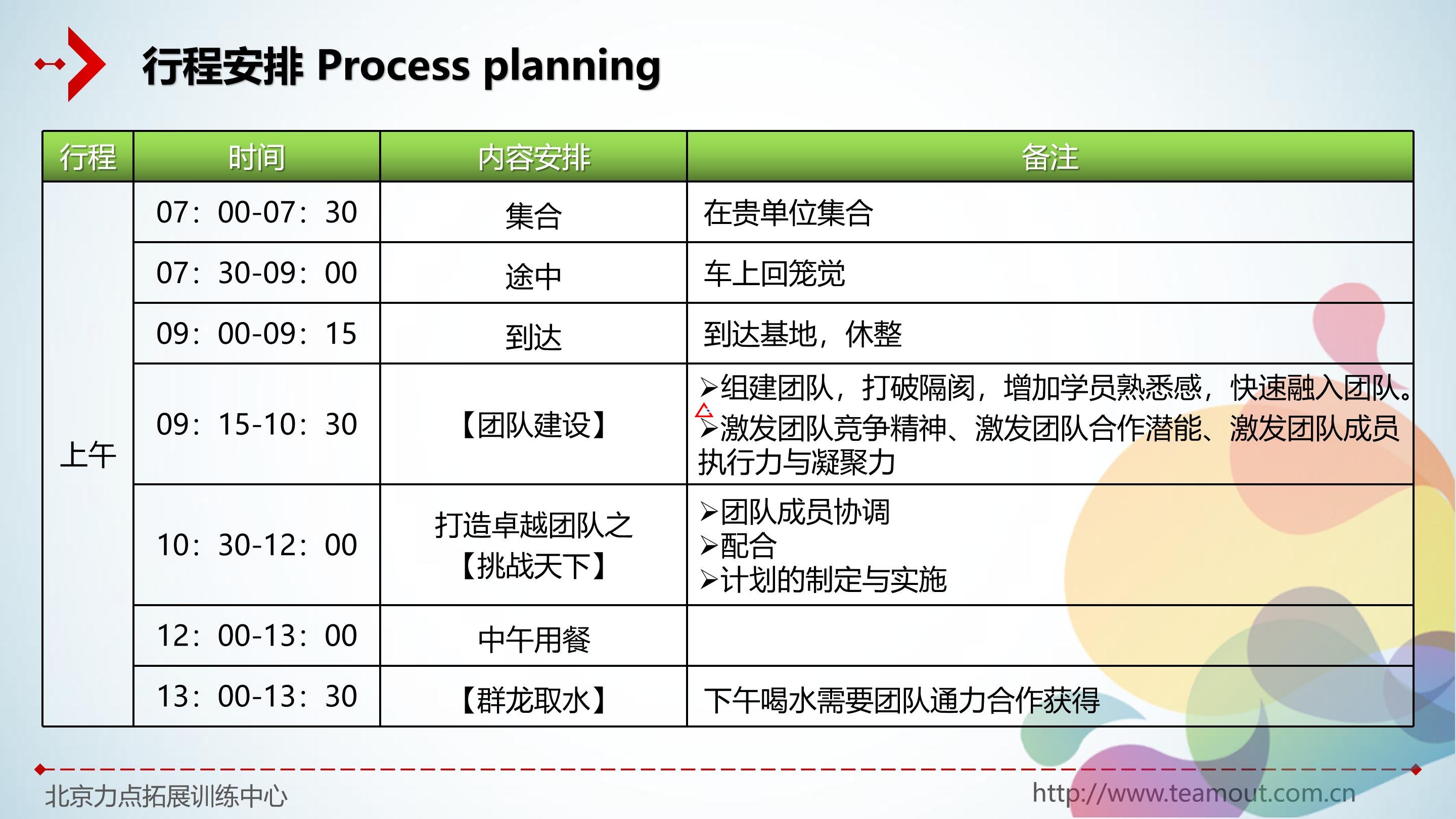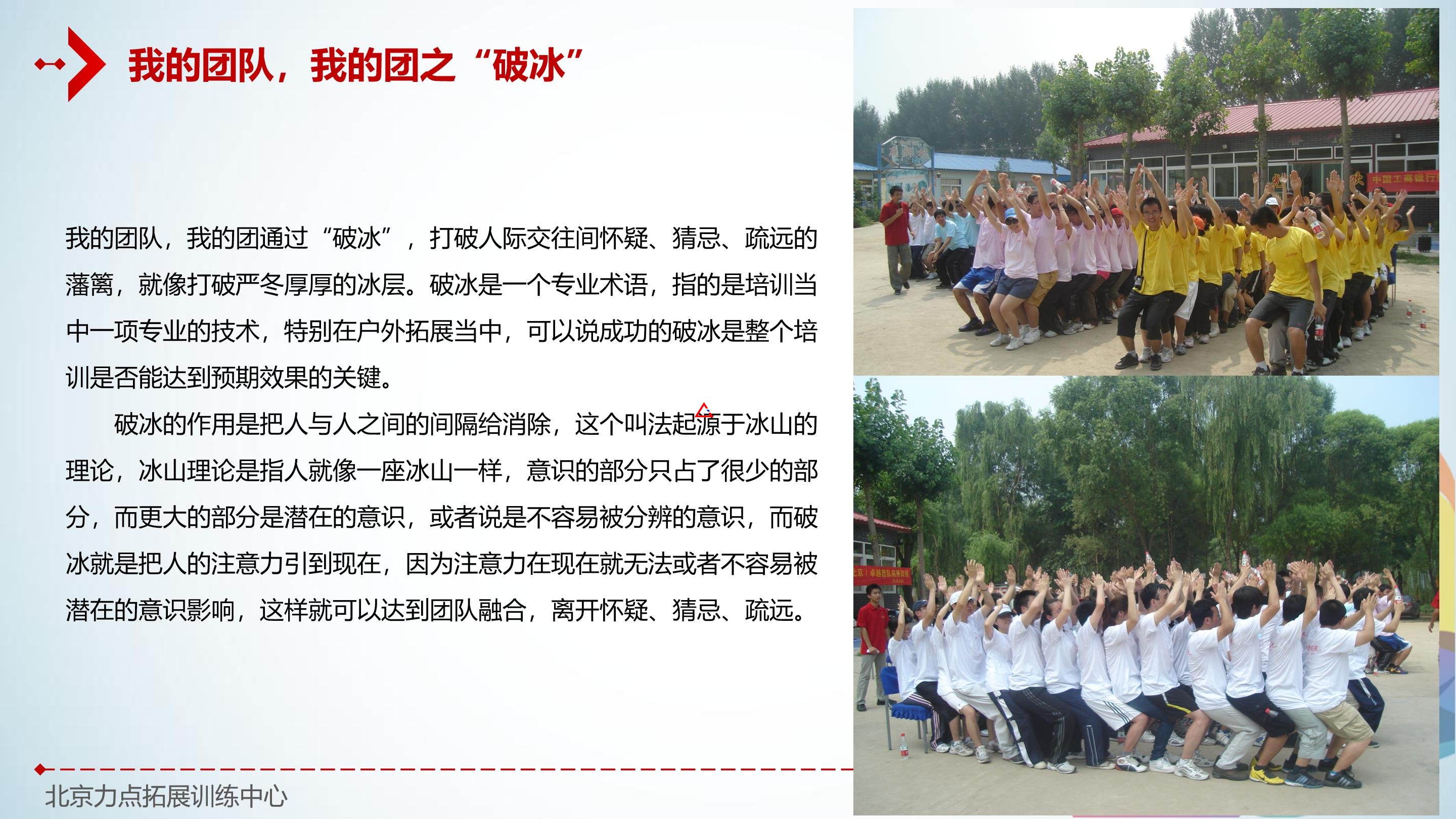 態(tài)度決定一切。團(tuán)隊(duì)內(nèi)出現(xiàn)的大部分問(wèn)題都與“態(tài)度”有關(guān),因此,力點(diǎn)拓展培訓(xùn)的重點(diǎn)在于改變?nèi)说膽B(tài)度,諸如:合作、溝通、理解和信任等。