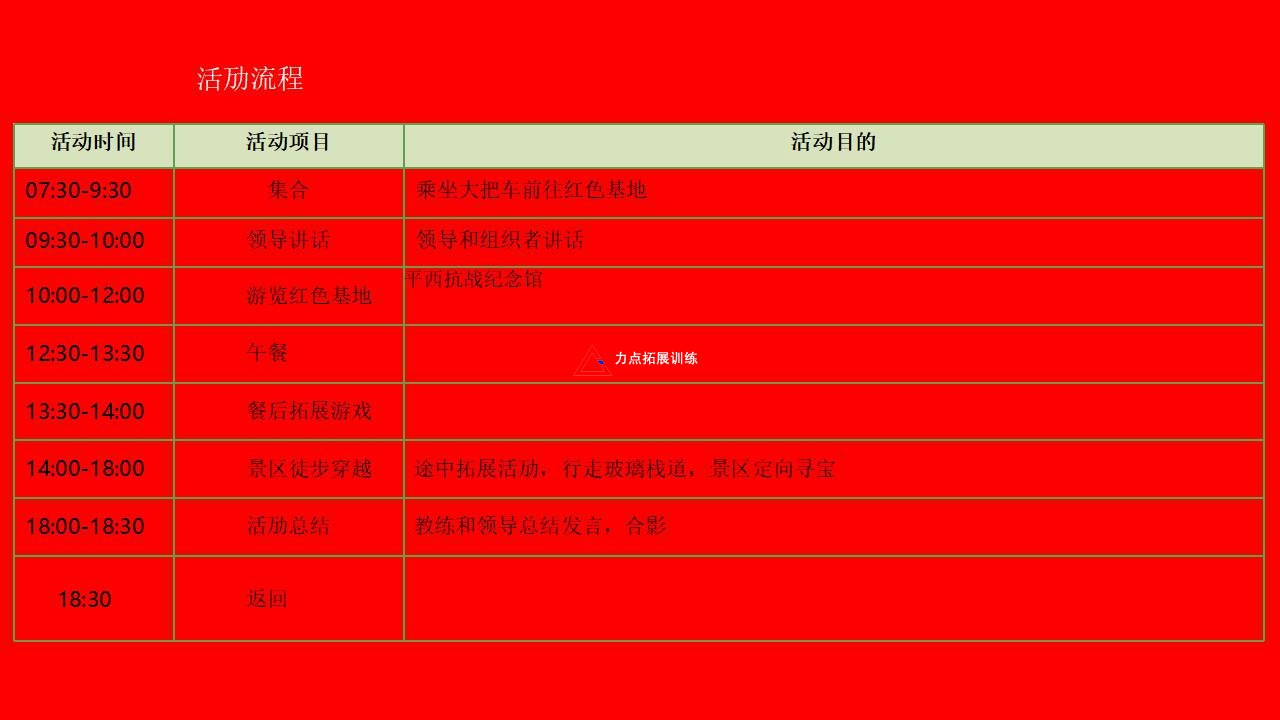 一天紅色主題團(tuán)建活動(dòng)參考: