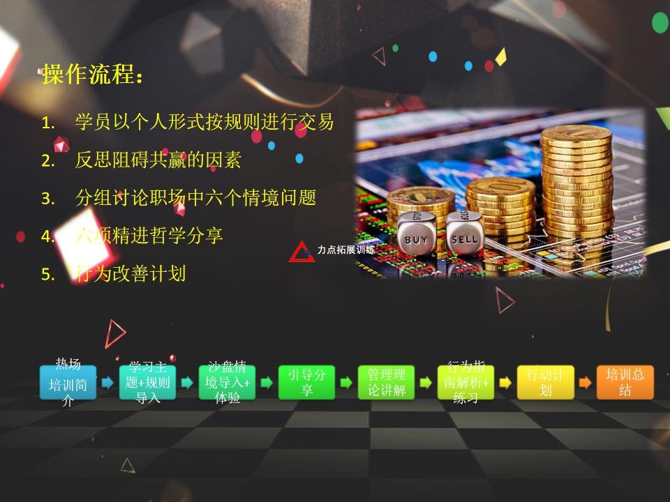本課程采取成年人易于接受的游戲化學(xué)習(xí)形式,在活躍的課堂氛圍中,將學(xué)員作為學(xué)習(xí)的主體,通過(guò)情境化的游戲設(shè)計(jì)、結(jié)構(gòu)化的學(xué)習(xí)內(nèi)容和多樣化的學(xué)習(xí)手段,實(shí)現(xiàn)中層干部五大管理能力的培養(yǎng)和訓(xùn)練。